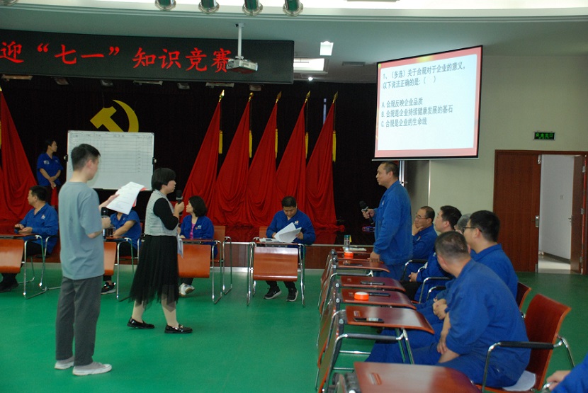 為迎接黨的102周歲華誕,深入學習貫徹習近平總書記重要講話精神,不斷創新學習形式、深化學習效果,2023630日,公司黨群紀檢工作部組織了“2023年迎七一黨史知識競賽”活動。公司黨委副書記梁敬斌、總法律顧問劉鵬杰、工會主席趙金伶出席比賽現場。公司九支隊伍參加比賽,每支隊伍由三名隊員組成,分別為各支部支委、正式黨員和入黨積極分子。