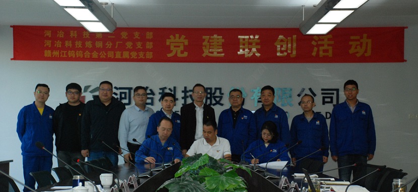 10月11日,河冶科技第二黨支部、河冶科技煉鋼分廠黨支部與贛州江鎢鎢合金公司直屬黨支部黨建聯創活動在河冶科技召開,本次黨建聯創活動主題為“黨建共建聚合力 砥礪初心勇作為 搭建平臺促發展”。